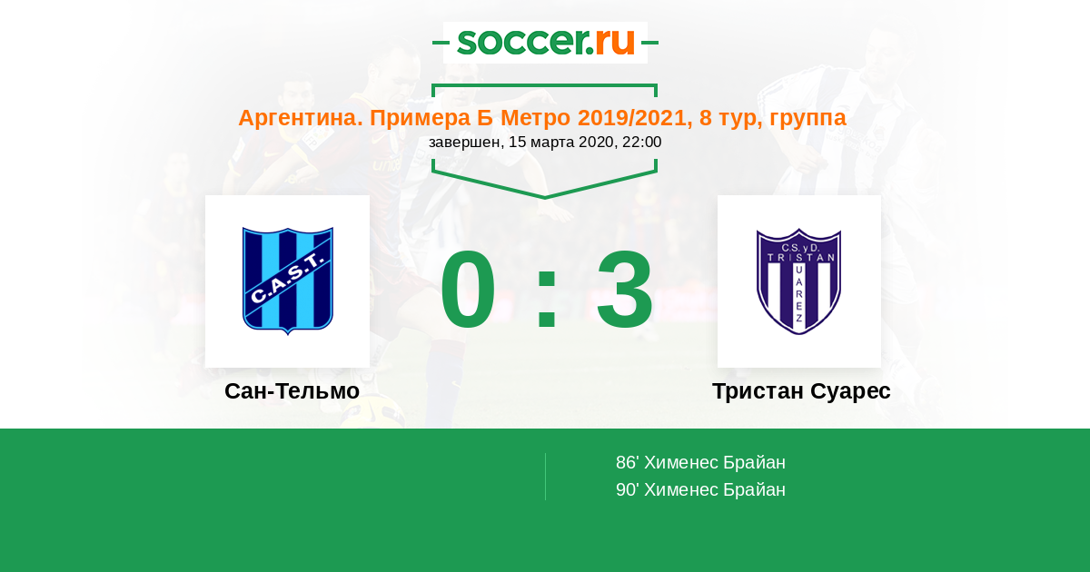 80' ЗаменаЛоготип Сан-ТельмоФариас Лукас уходит с поля