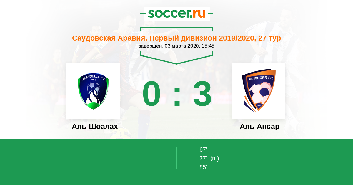 67' ГолЛоготип Аль-АнсарA. Al Alatti - 0:1