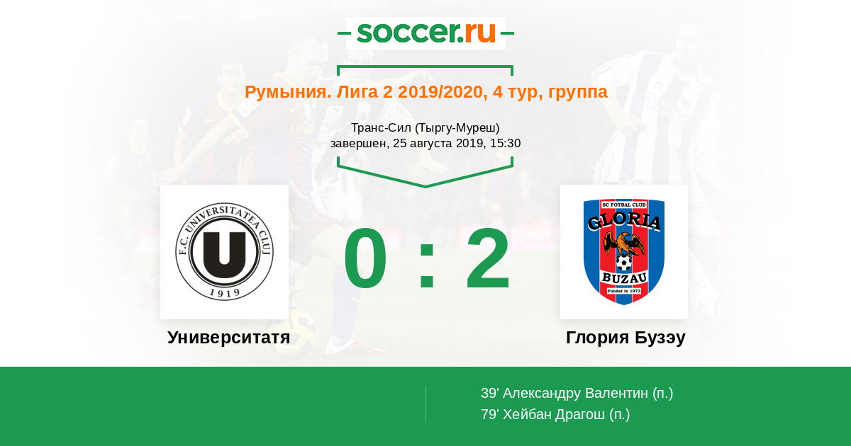 79' Гол с пенальтиЛоготип Глория БузауХейбан Драгош - 0:2 (П)