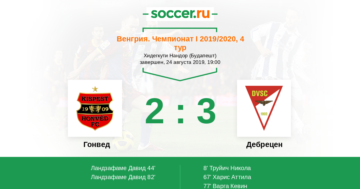 65' Желтая карточкаЛоготип ГонведЛандзафаме Давид (9) получил ж.к.