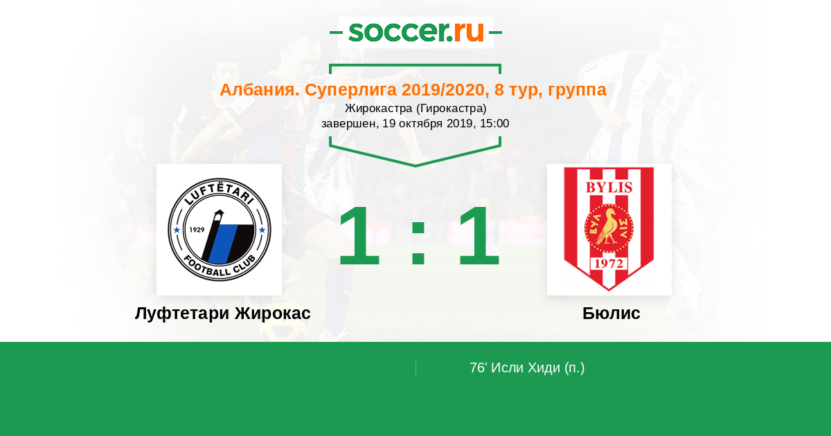 76' Гол с пенальтиЛоготип БюлисИсли Хиди - 0:1 (П)