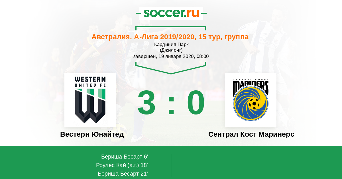 Вестерн Юнайтед - Сентрал Кост Маринерс
