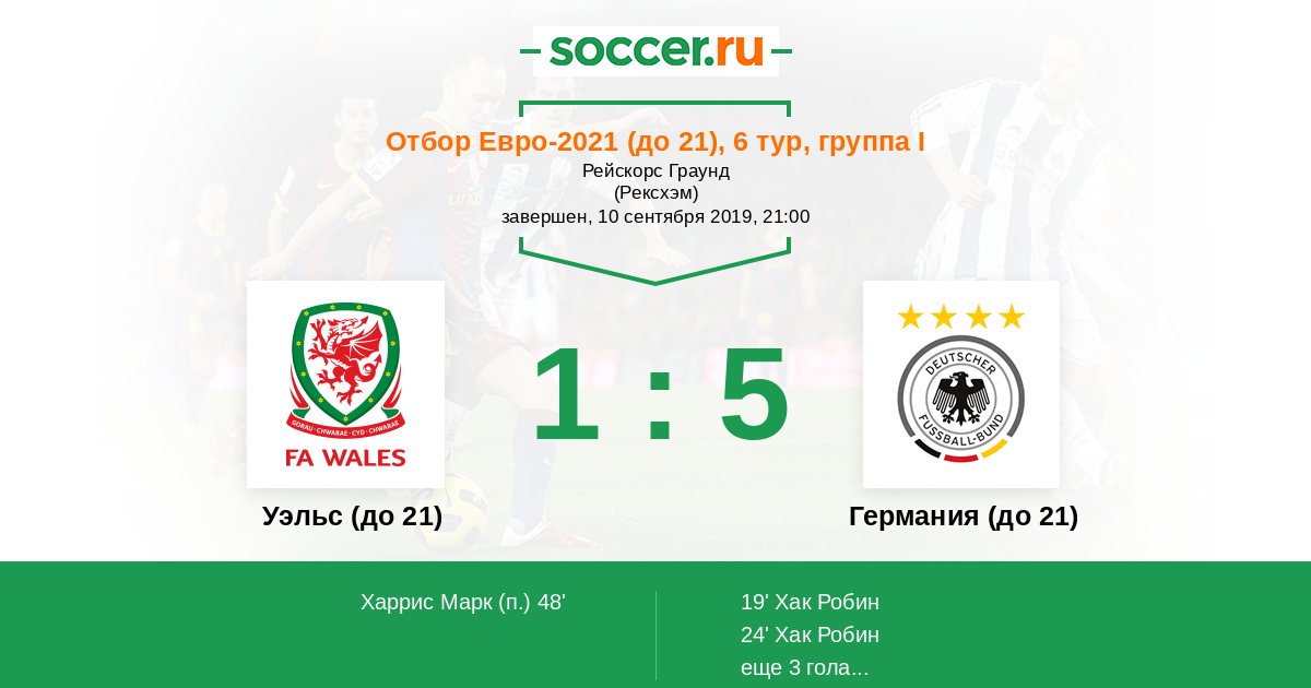 50' ГолГермания (до 21)Файн Адриан (19) - 1:5