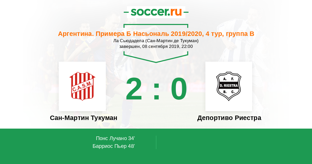 Сан-Мартин Тукуман - Депортиво Риестра