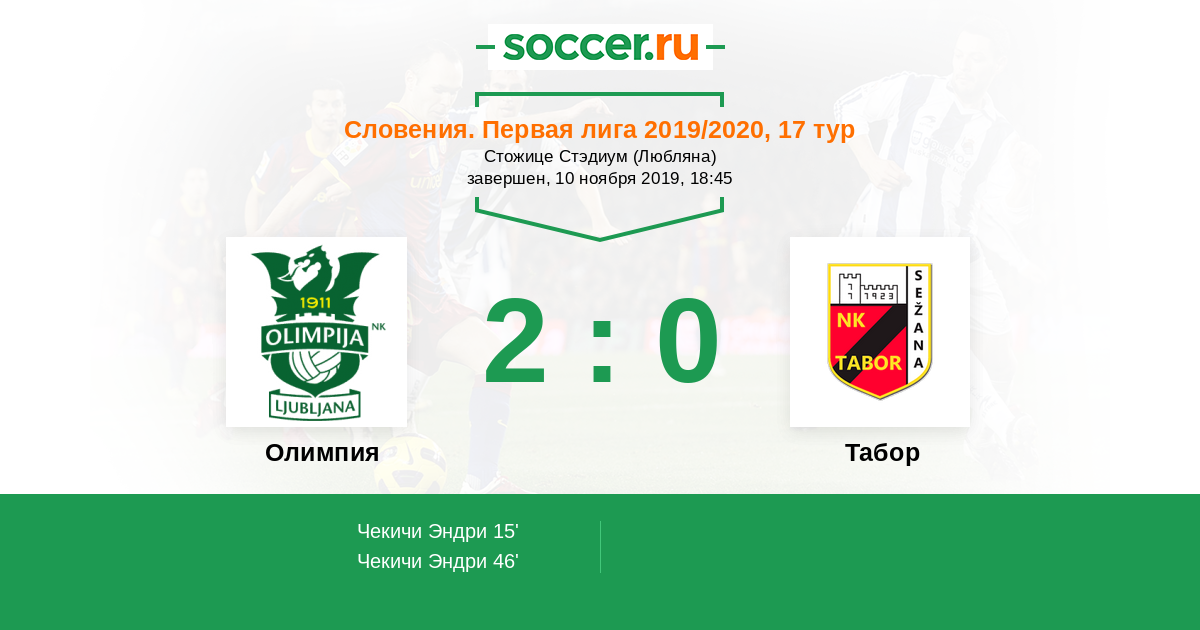 46' ГолЛоготип ОлимпияЧекичи Эндри (8) - 2:0