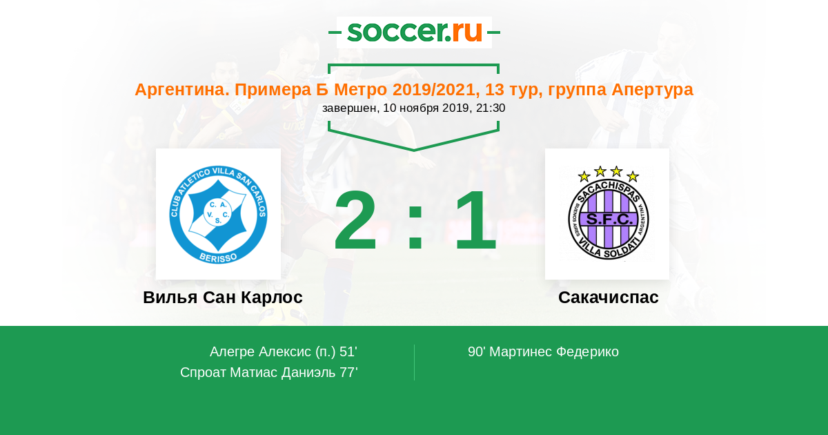 78' ЗаменаЛоготип Вилья Сан КарлосСпроат Матиас Даниэль уходит с поля