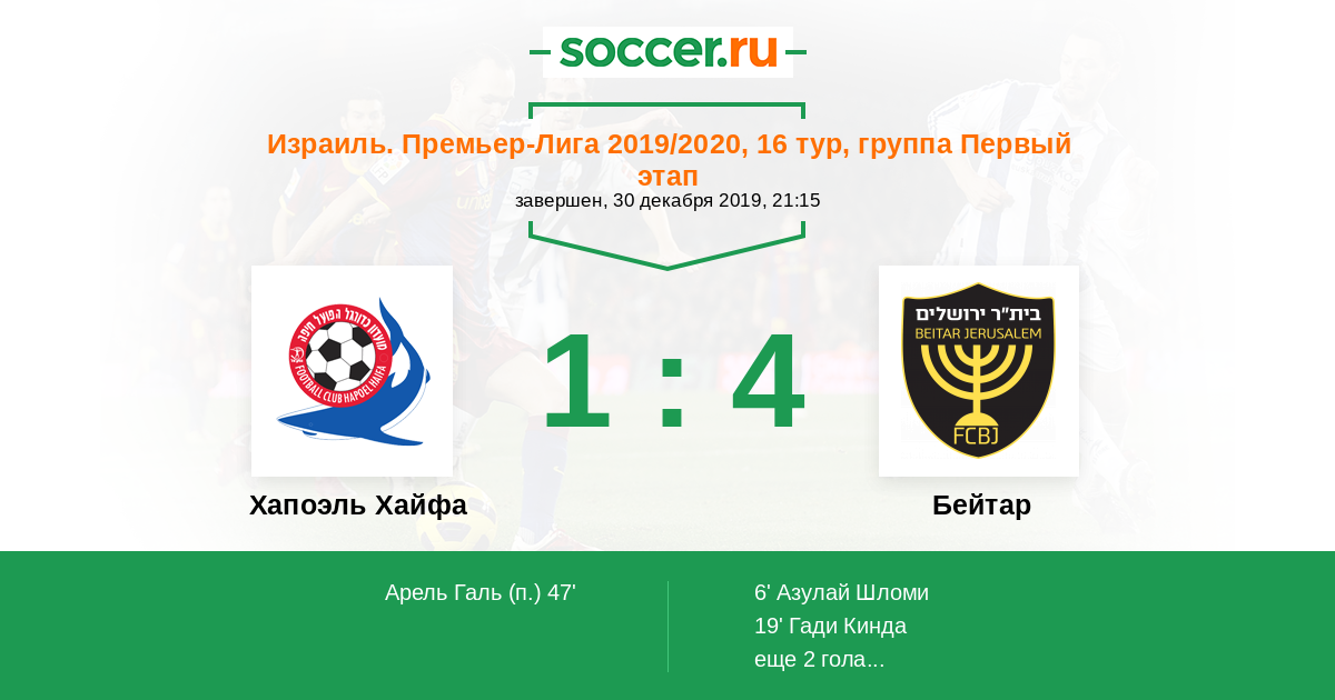 47' Гол с пенальтиЛоготип Хапоэль ХайфаАрель Галь (6, з) - 1:3 (П)