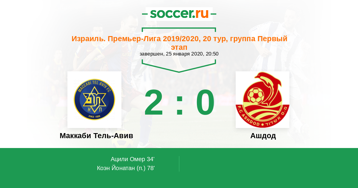 34' ГолЛоготип Маккаби Тель-АвивАцили Омер (7, н) - 1:0
