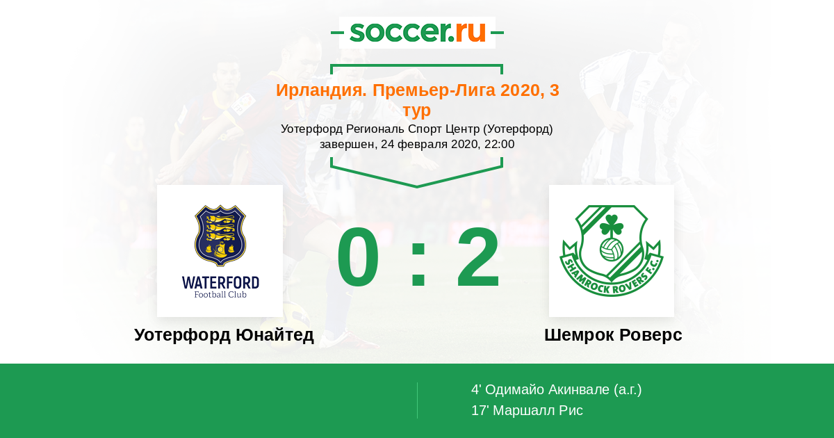 17' ГолЛоготип Шемрок РоверсМаршалл Рис (2) - 0:2