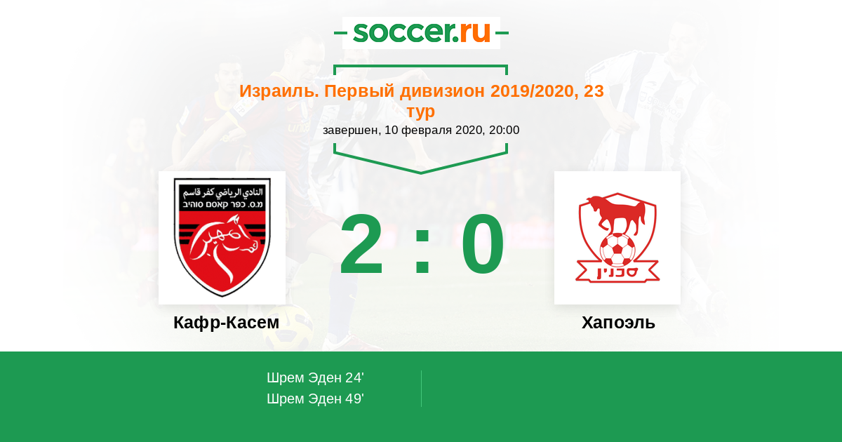 24' ГолЛоготип Кафр-КасемШрем Эден - 1:0