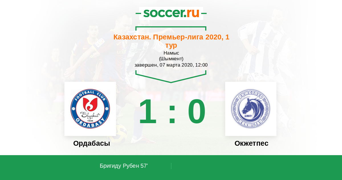 65' ЗаменаЛоготип ОрдабасыБригиду Рубен уходит с поля