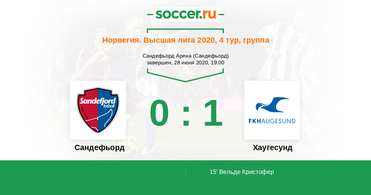 15' ГолЛоготип ХаугесундВельде Кристофер (99, п) - 0:1