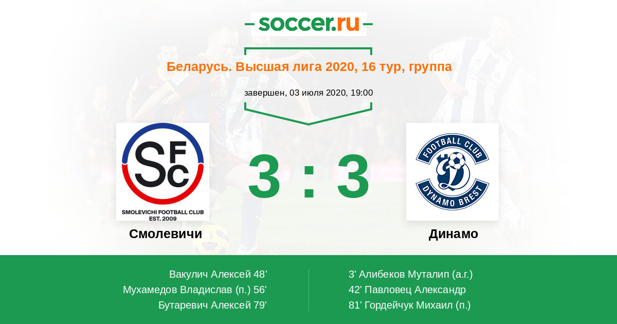 48' ГолЛоготип СмолевичиВакулич Алексей (24, з) - 1:2