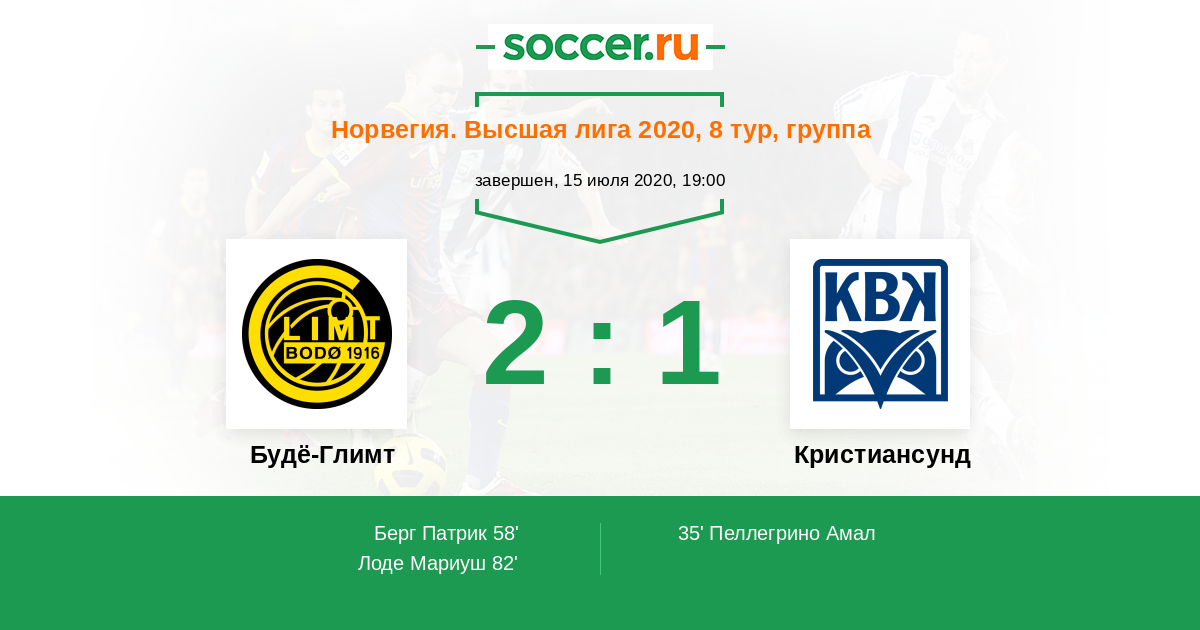 Логотип Будё-ГлимтСкитте Сэмми (20, п) выходит на поле