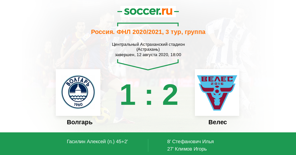 45+2' Гол с пенальтиЛоготип ВолгарьГасилин Алексей (9) - 1:2 (П)