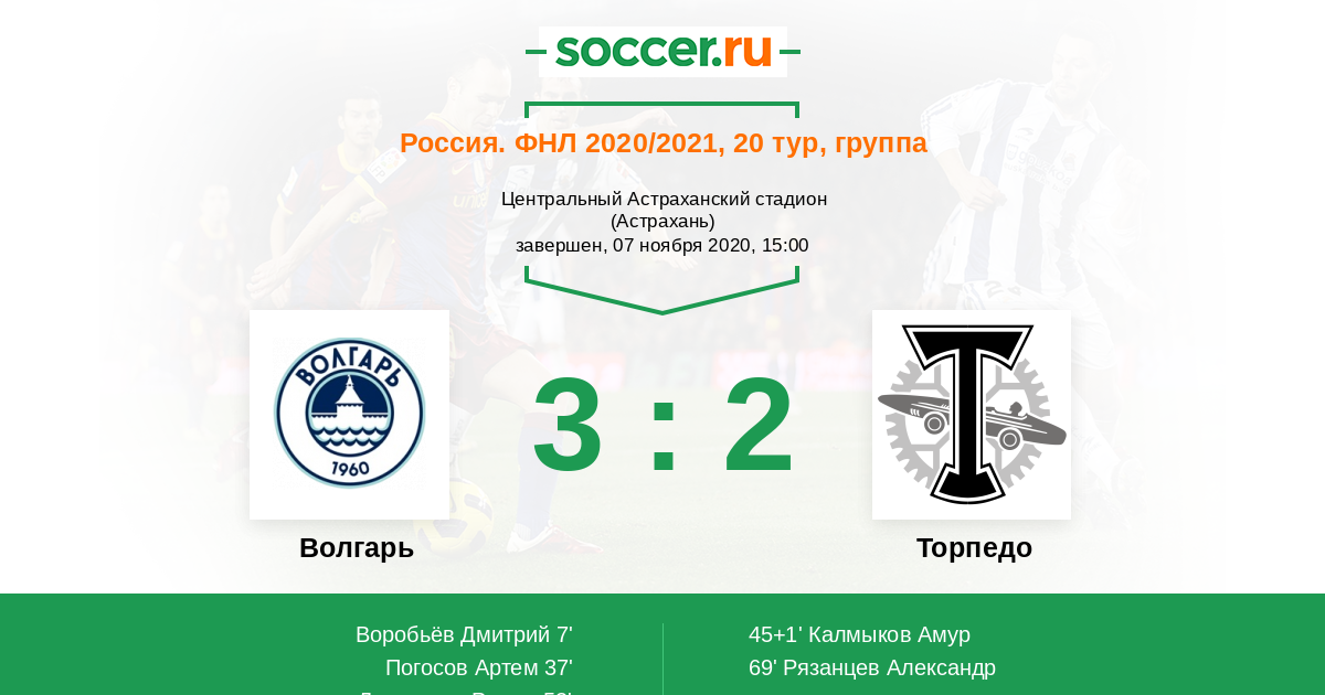 37' ГолЛоготип ВолгарьПогосов Артем (95, н) - 2:0