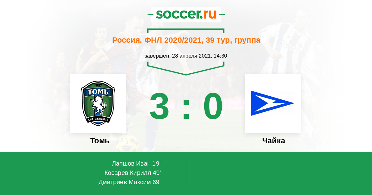 19' ГолЛоготип ТомьЛапшов Иван (42, з) - 1:0