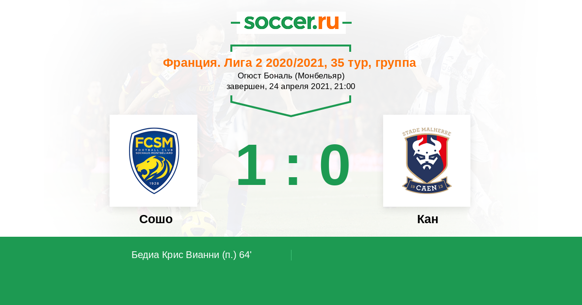 0 | Офсайды | 1 |