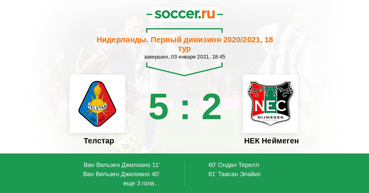60' ГолЛоготип НЕК НеймегенОндан Терелл (77, з) (Логотип НЕК НеймегенТавсан Элайис (7, п)) - 3:1