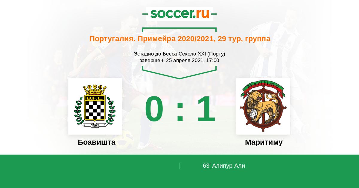 63' ГолЛоготип МаритимуАлипур Али (70, н) (Логотип МаритимуЖоэль (95, п)) - 0:1
