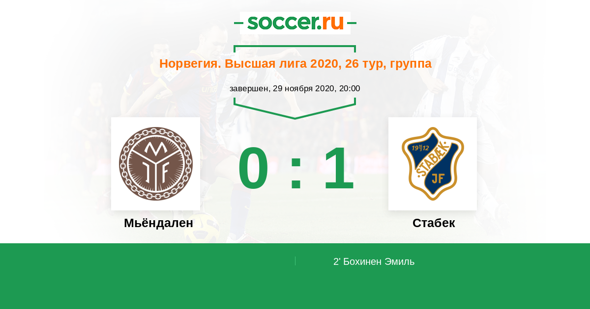 Логотип МьёндаленСтавас Эрик (31, п) выходит на поле