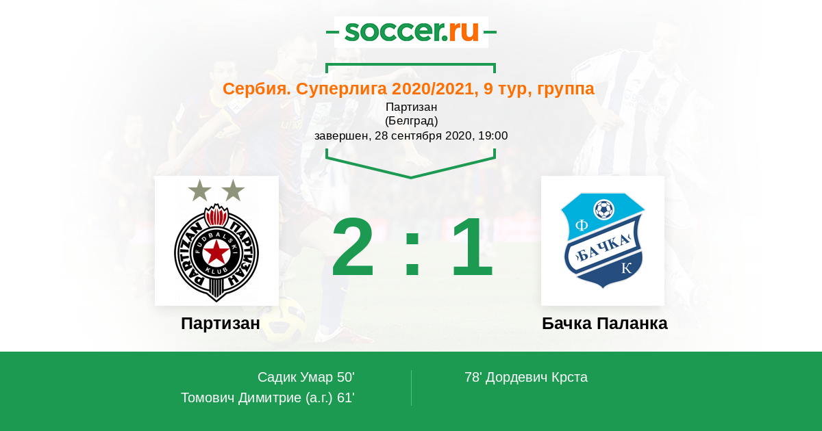 50' ГолЛоготип ПартизанСадик Умар (9) - 1:0