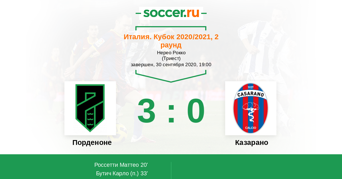 20' ГолЛоготип ПорденонеРоссетти Маттео (88, п) - 1:0