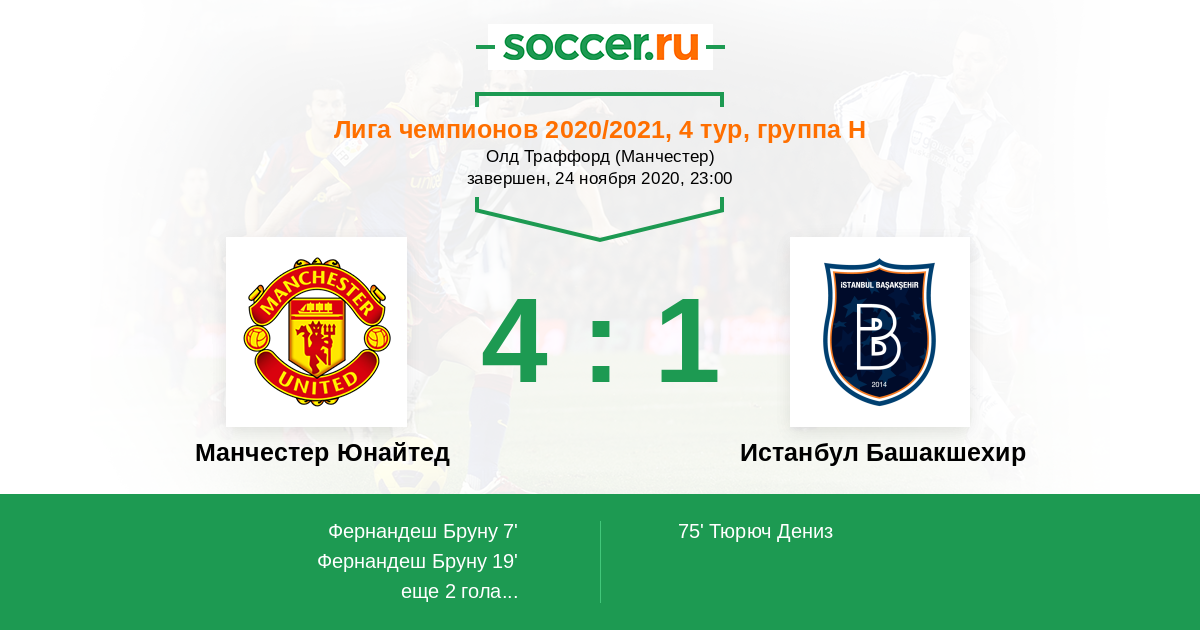 МЮ заслуженно победил, старт игры был мощным, Бруно красиво пушкой положил, второй гол это ляп вратаря. Пенальти заслуженный - Рэшфорда сбили и правильно что дали его пробить, все таки он в лидерах по голам в ЛЧ и сам этот пенальти заработал. Во втором тайме после замен Истанбул стал давить, но и у Гринвуда были моменты но он их не реализовал, но отдал голевую на Джеймса. Кавани был неплох, стягивал защитников, опускался назад но на острие особо себя не проявил, загубил один явный момент. Донни ван де Бек был неплох в паре с Фредом, жаль что Туанзебе получил карточку и пропустит следующую игру в ЛЧ. В параллельной игре ПСЖ победил, теперь МЮ надо набирать очки против ПСЖ или Лейпцига чтобы выходить из группы, шансы все же хорошие на плей-офф.