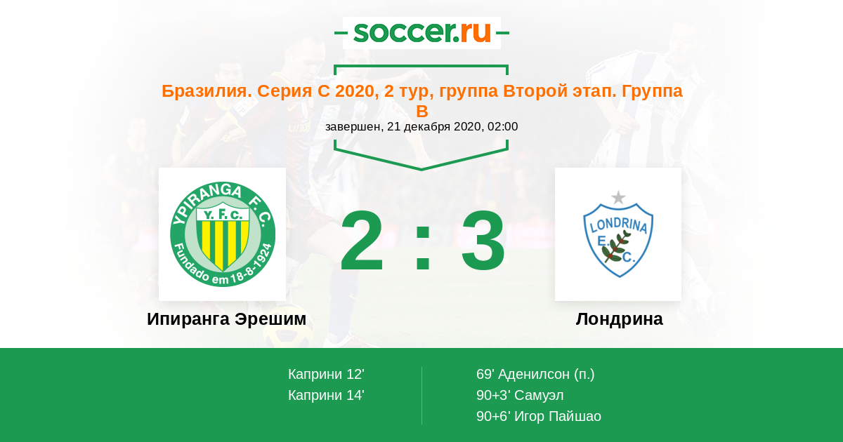 90+6' ГолЛоготип ЛондринаИгор Пайшао - 2:3