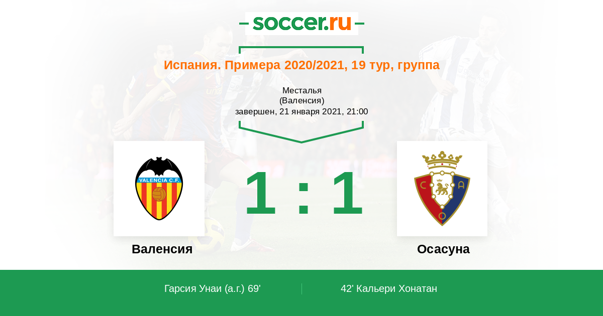 Матч пока что очень сумбурный, по первому тайму видно что Валенсия очень хочет победить дома, но из-за того что постоянно много "мельчат" или наоборот устраивают сумбурный навал - просто не могут довести до толковых моментов у ворот Осасуны. А гости наоборот, толком за первый тайм совершили три атаки, и забили гол с первого же опасного момента.