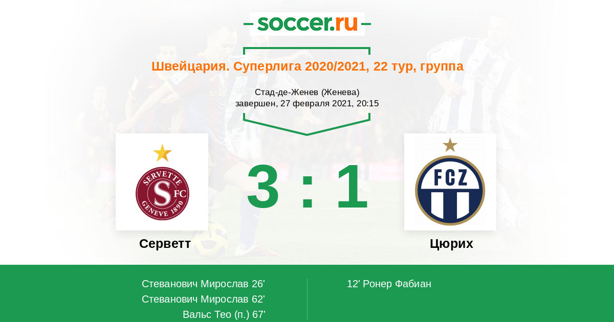 75' ЗаменаЛоготип ЦюрихШенбехлер Марко (27, п) уходит с поля