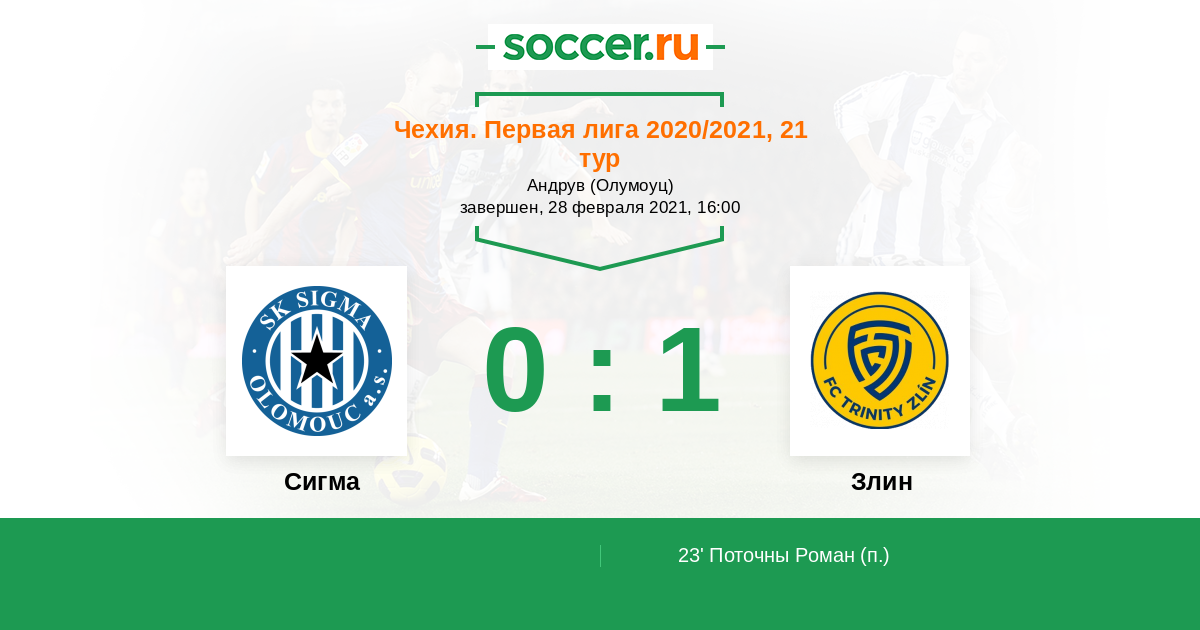 23' Гол с пенальтиЛоготип ЗлинПоточны Роман (13, п) - 0:1 (П)