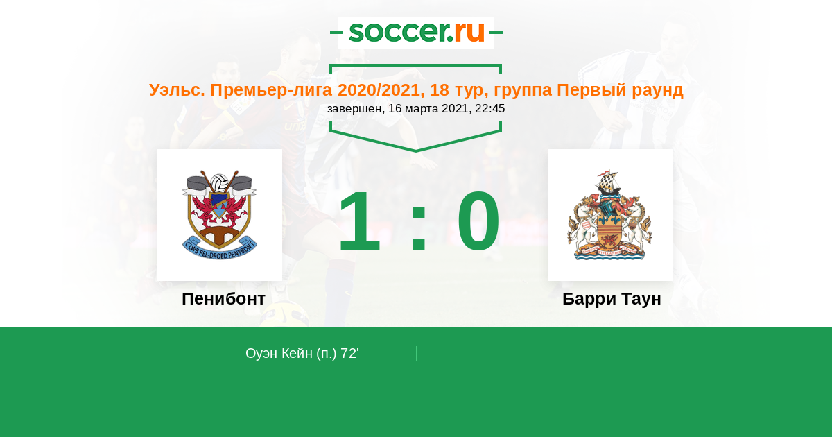 72' Гол с пенальтиЛоготип ПенибонтОуэн Кейн - 1:0 (П)