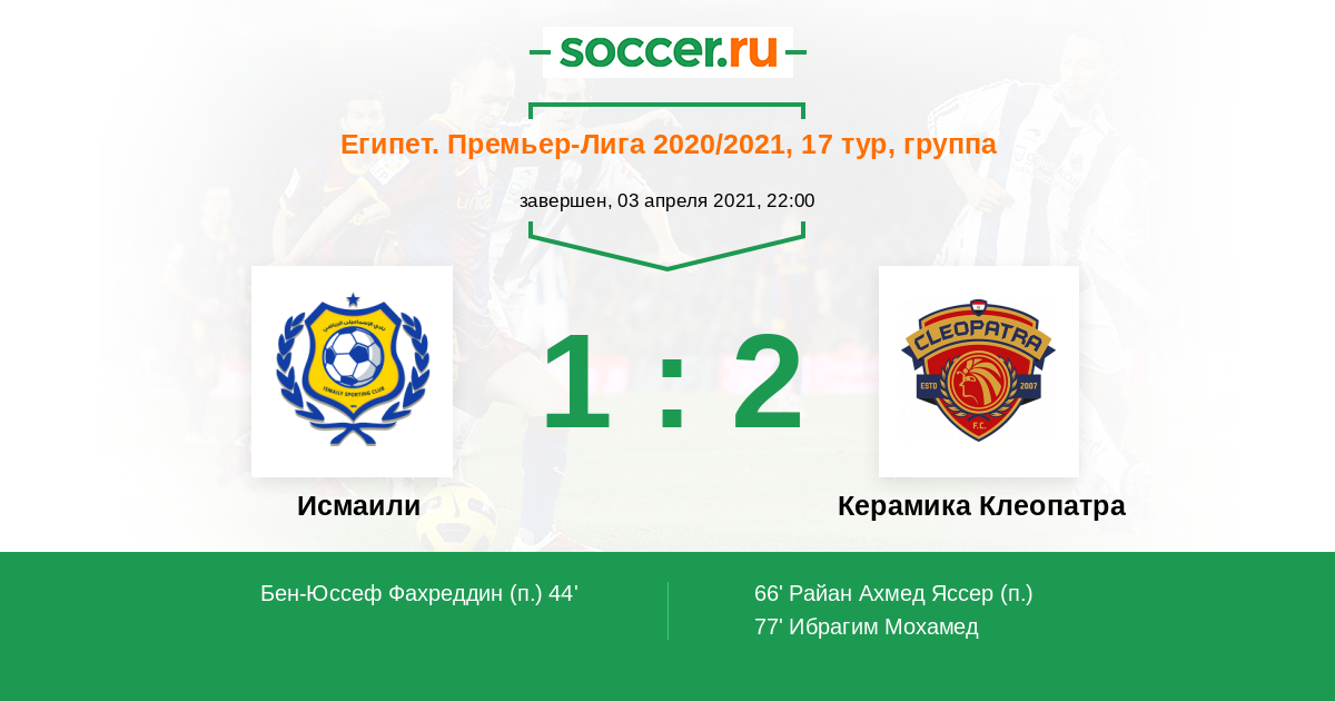 83' ЗаменаЛоготип Керамика КлеопатраРайан Ахмед Яссер (29, н) уходит с поля