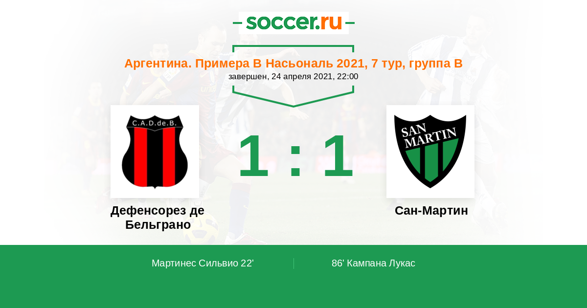 83' ЗаменаЛоготип Дефенсорез де БельграноМартинес Сильвио уходит с поля
