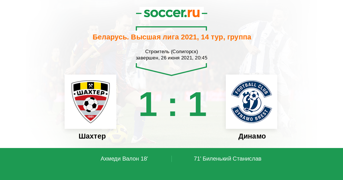 18' ГолЛоготип ШахтерАхмеди Валон (8, п) (Логотип ШахтерДарбо Дембо (88, н)) - 1:0
