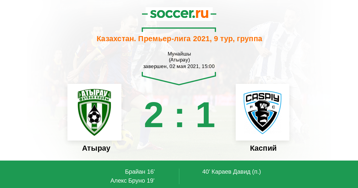 40' Гол с пенальтиЛоготип КаспийКараев Давид - 2:1 (П)