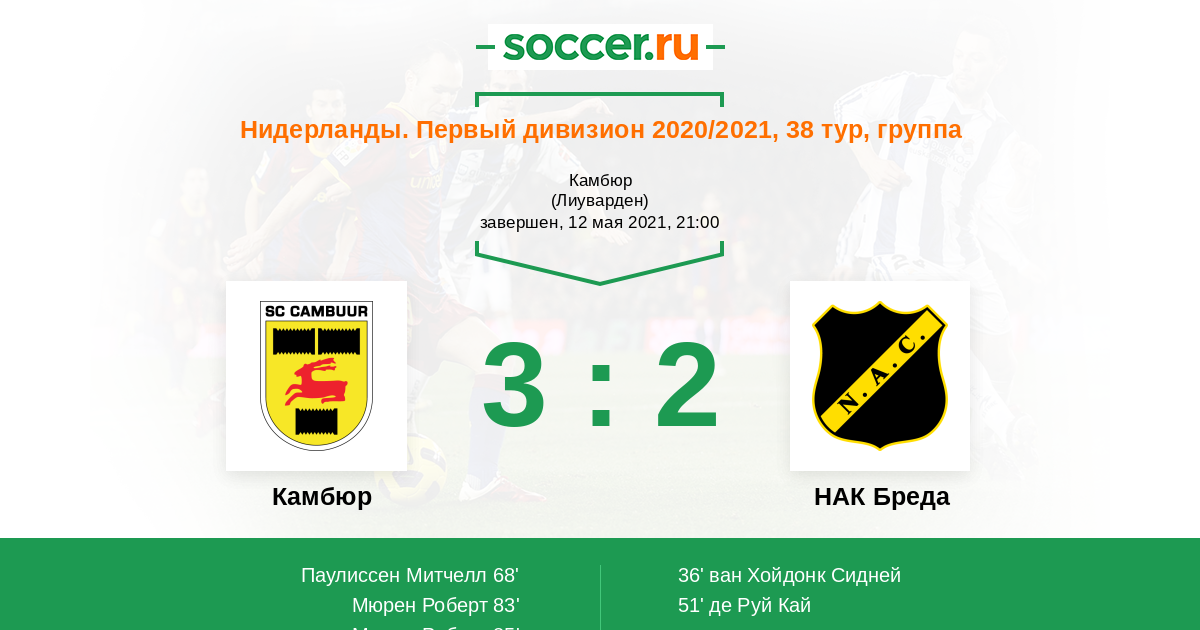 51' ГолЛоготип НАК Бредаде Руй Кай (7, н) (Логотип НАК БредаХайе Том (33, п)) - 0:2