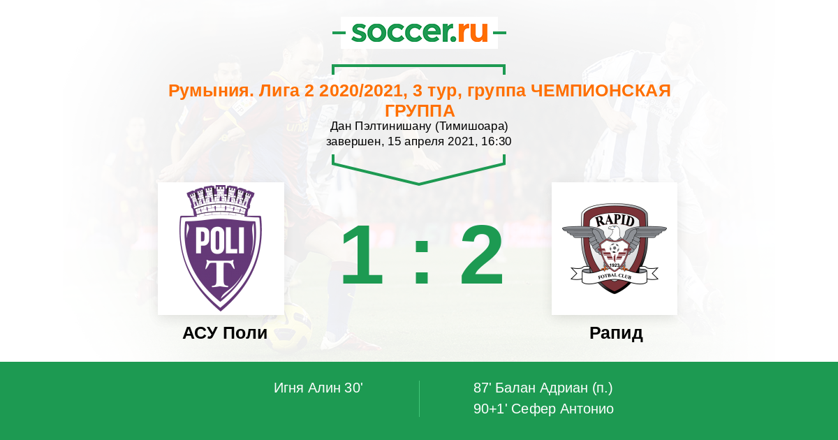 87' Гол с пенальтиЛоготип РапидБалан Адриан - 1:1 (П)