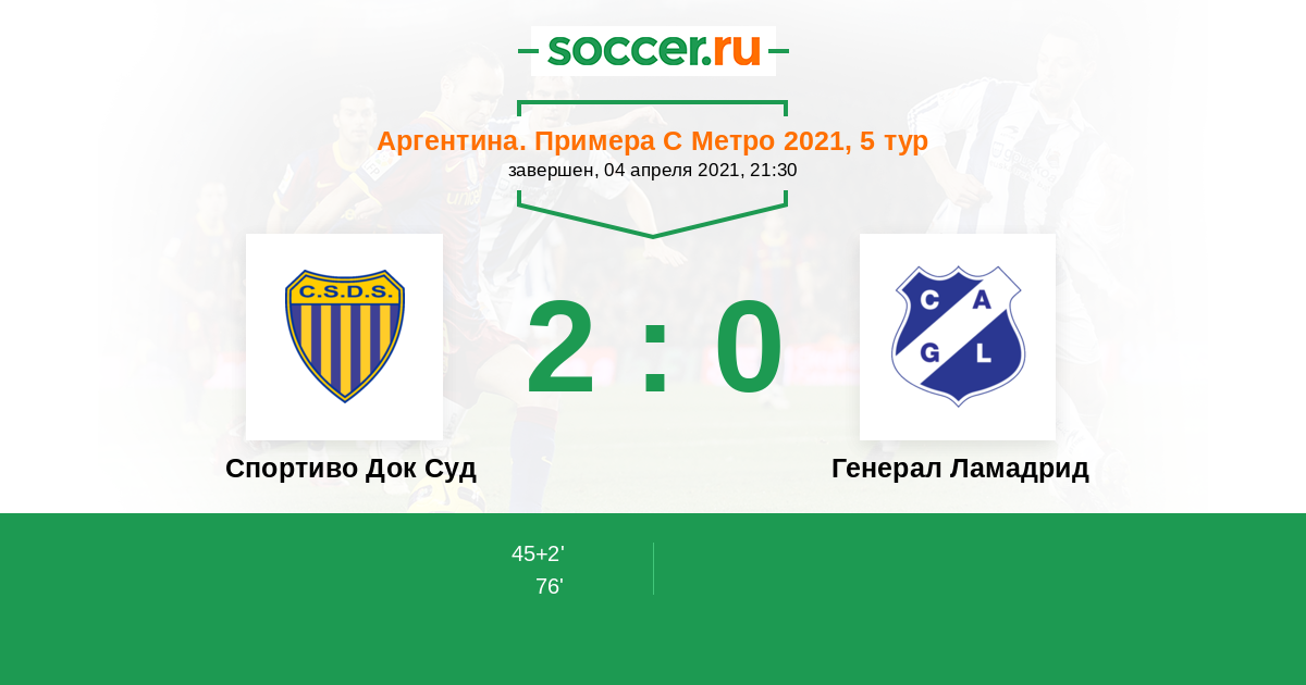 45+2' ГолЛоготип Спортиво Док СудM. Blanco - 1:0