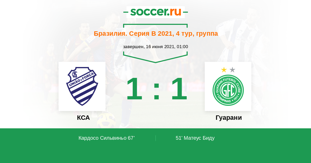 67' ГолЛоготип КСАКардосо Сильвиньо (11, з) (Логотип КСАГабриэль (27, п)) - 1:1