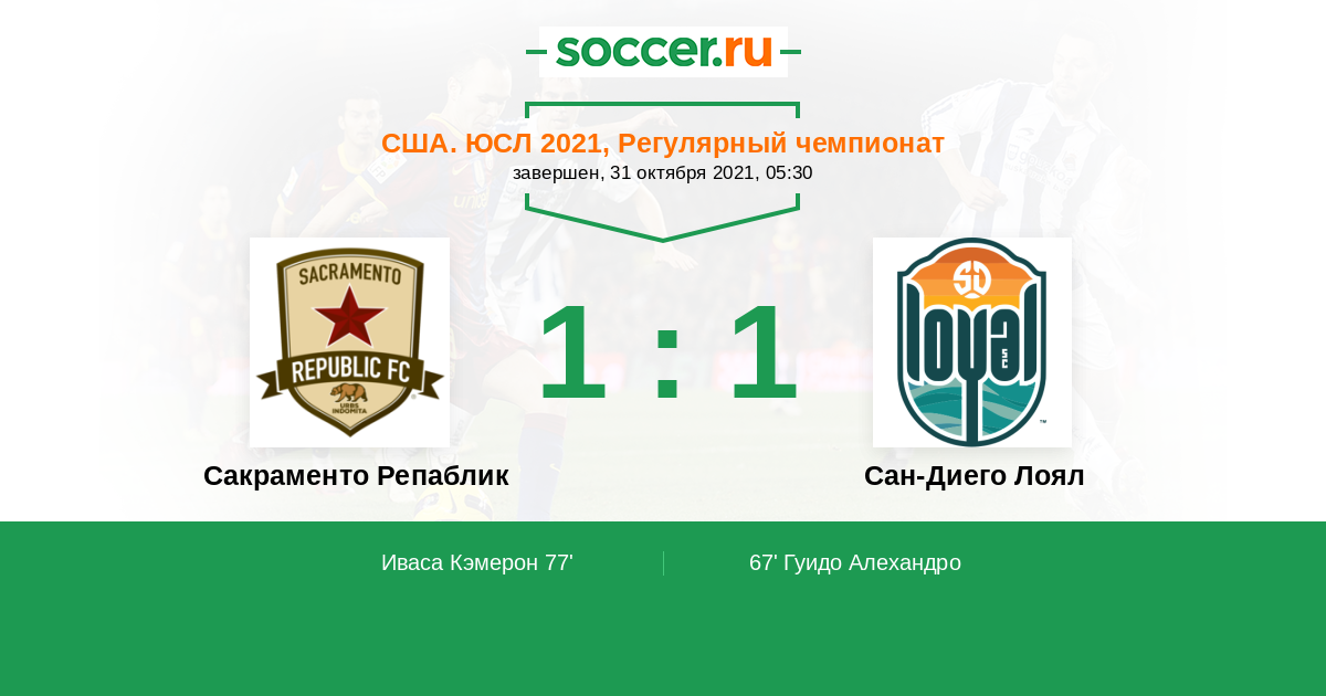 77' ГолЛоготип Сакраменто РепабликИваса Кэмерон (31) - 1:1