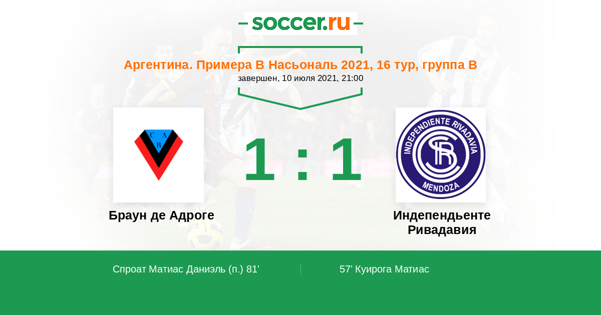 55' ЗаменаЛоготип Индепендьенте РивадавияНаварро Себастьян уходит с поля
