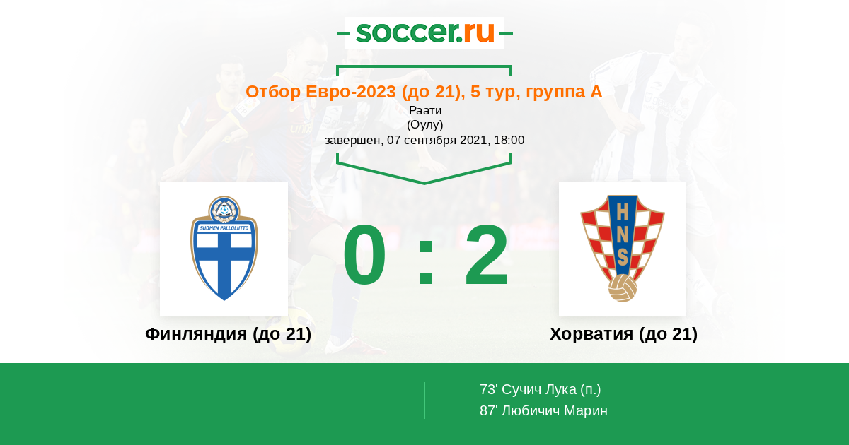 73' Гол с пенальтиХорватия (до 21)Сучич Лука (10) - 0:1 (П)