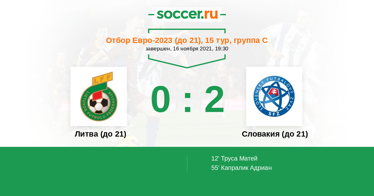 12' ГолСловакия (до 21)Труса Матей (11) - 0:1