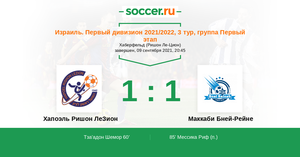 90+2' ЗаменаЛоготип Маккаби Бней-РейнеМессика Риф уходит с поля