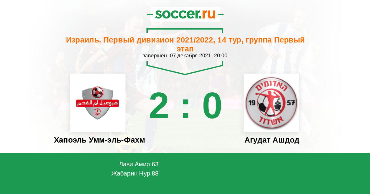 63' ГолЛоготип Хапоэль Умм-эль-ФахмЛави Амир - 1:0