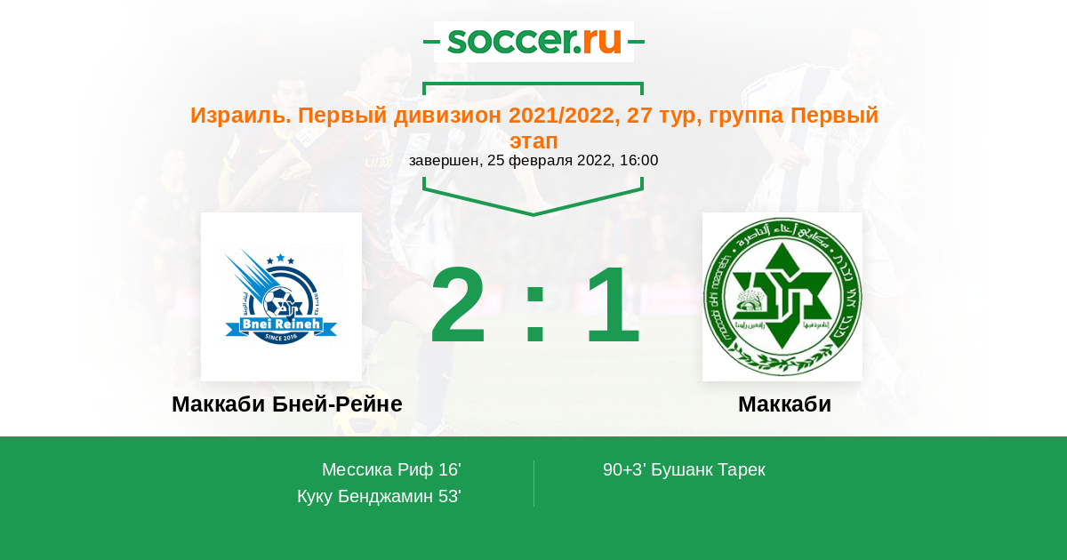 71' ЗаменаЛоготип Маккаби Бней-РейнеМессика Риф уходит с поля