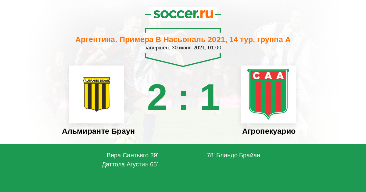 44' Желтая карточкаЛоготип Альмиранте БраунВера Сантьяго получил ж.к.