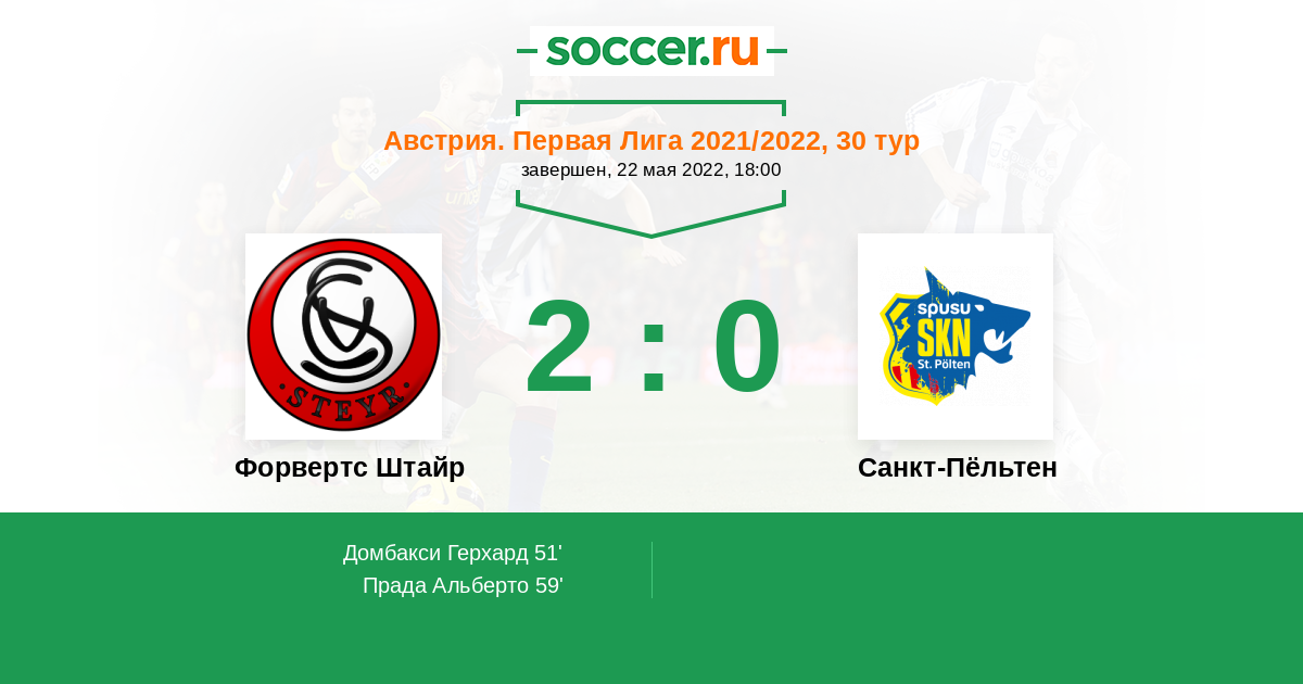 59' ГолЛоготип Форвертс ШтайрПрада Альберто (17, з) (Логотип Форвертс ШтайрАлак Кан (70, з)) - 2:0